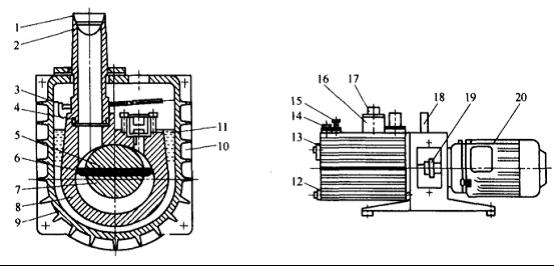 7-轉子;8-定子;9-油箱;10-真空泵油;11-排氣閥門;12-放泊螺塞;