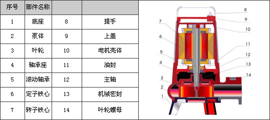AS、AV型潛水式排污泵結(jié)構(gòu)圖: