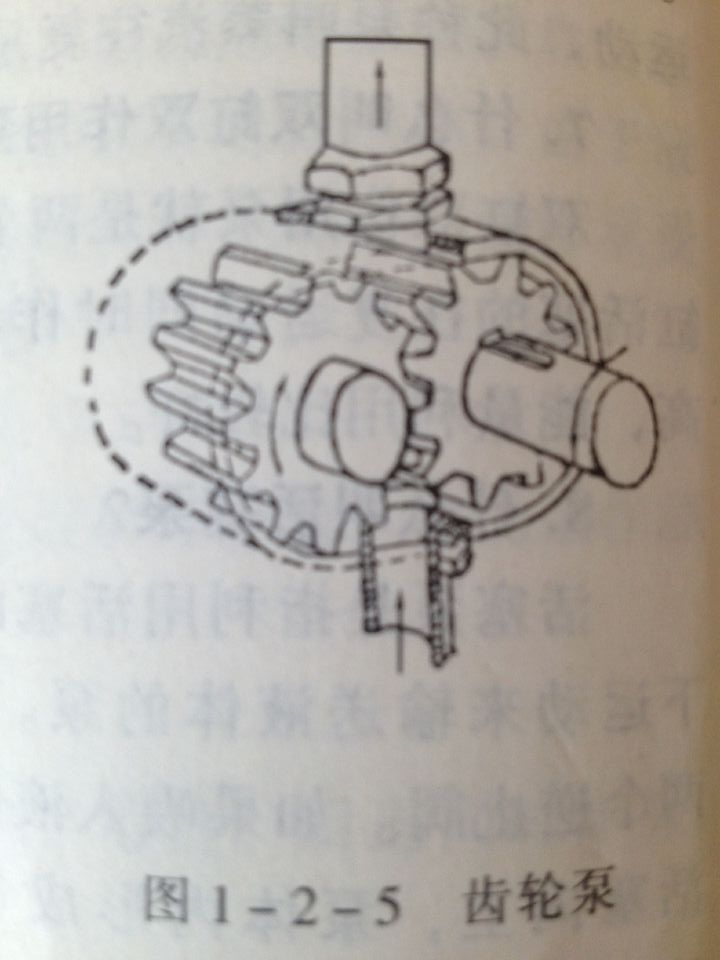 齒輪泵是由兩個齒輪嚙合在一起組成的泵。如圖1-2-5。